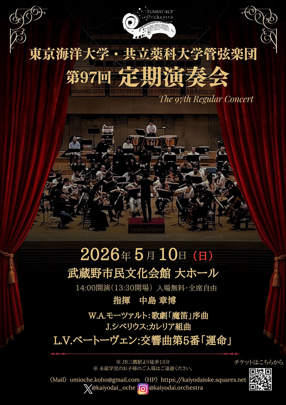 来月10日(日)GW明けに定期演奏会がございます!私もコントラバスを演奏いたしますので、オーケストラ音楽に興味がありましたらぜひ聴きに来てくださいね。入場無料です。